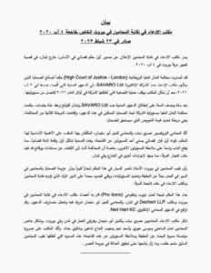 وجاء في التّغريدة المُرفقة: “العدالة آتية، لا محال! أول حكم قضائي في قضية جريمة العصر 4 آب، خارج لبنان!”.