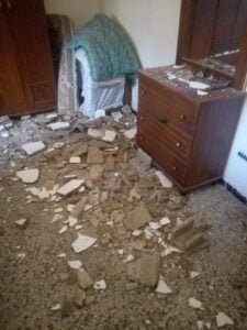 انهيار جزء من سقف منزل في بلدة الدوير النبطية جراء التصدعات الناتجة عن إرتدادات الهزة الأرضية واقتصرت الأضرار على الماديات.