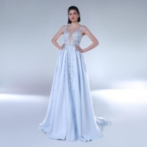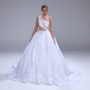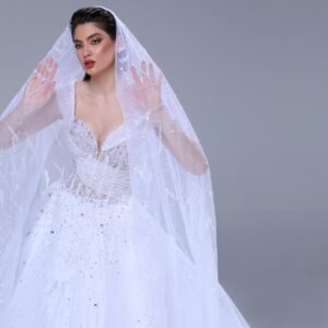 تنوعت القصات بين قصة السيران والقصة المفتوحة والواسعة وتميّزت التشكيلة بتصاميم طغى عليها قماش الرازمير الفاخر والكريب والساتان والتول وعزّز الشك والتطريز اليدوي من جمال الفساتين وأضاءها من خلال إدخال السواروفسكي البراق واللؤلؤ.