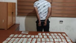 ونتيجة المتابعة والرصد، تمكنت إحدى دوريات المفرزة من توقيفه في المحلّة المذكورة بمكمن محكم، وتبيّن أنّه يُدعى: س. ح. (مواليد عام 1994، سوري). بتفتيشه، ضبط بحوزته مبلغ مالي من العملة الأميركية المزيّفة عبارة عن /2،550/ دولارًا من فئة “الخمسين” مزيّفة، و/200/ دولار من فئة “المئة” مزيّفة. بالتحقيق معه، اعترف بما نُسب إليه.