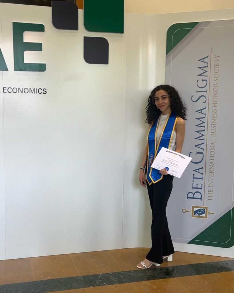 وتضيف: “شعرت بسعادة كبيرة ومسؤولية أكبر، اختياري اليوم سيساعدني في المستقبل لإكمال مسيرتي العلمية خاصة اذا قررت تحضير رسالة الدكتوراة في الهندسة المالية، كما يفيدني على المستوى المهني ويفتح أمامي آفاقا أوسع. أيقنت اليوم انني على السكة الصحيحة وفي العالم الذي انتمي اليه علميا، أحب لعبة المال الأعمال والهندسات المالية، لازلت في بداية الطريق لكني سأسعى لأبقى دائما متميزة أتحجز مكانتي الخاصة على مستوى العالم”.