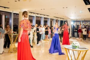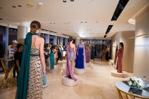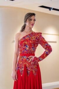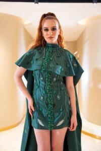 وتألفت المجموعة المميزة من 15 فستاناً مصمماً بعناية فائقة حيث تزينت كل قطعة بتطريز يدوي يبرز جوهر المرأة العربية، وتدرجت ألوان التصاميم من الظلال الجريئة من الأحمر إلى درجات البنفسجي والأخضر الساحرة.