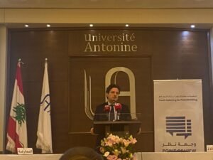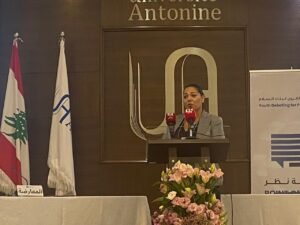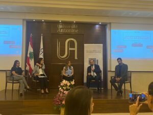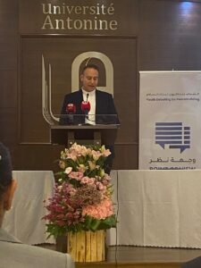 وقالت يسير: “أشكر جميع الإعلاميين والإعلاميات والأساتذة الأكاديميين، وأشكر خصوصا الاب العلم لأنه فتح لنا صرح الجامعة الأنطونية ليس فقط لاستضافة هذا النشاط بل حتى يخلق أفقا جديدا بالشراكة مع جامعة من الجامعات الأخرى التي تشرفنا خلال السنوات الماضية بإن نعقد معها اتفاقات وشراكات ولقاءات متميزة وبلغ عددها 12جامعة”.