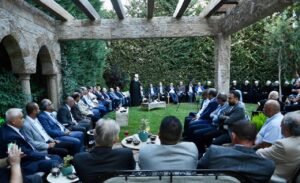 اضاف: “هذا الجبل هو جزء من الوطن الذي يتميّز بالتنوّع وهذا التنوع موجود هنا، ففي هذه الحديقة بيننا المشايخ رجال الدين الأعزاء الأفاضل والشخصيات السياسية والقضائية والأخوة من هنا وهناك من رحاب الجبل والوطن ويعكس صورة التنوع القائم في لبنان. وهل يقوم لبنان الا بهذا التنوع؟ وهل يتكامل المشهد في لبنان إلا بهذا التنوع الجميل؟ هذا المشهد الرائع في بعلشميه، جارة المشرفة، في الجرد في عاليه، هذا المشهد الذي يجمعنا وإياكم في هذا اللقاء الطيب، يستحق معالي الوزير التكريم ويستحق الدكتور هشام أن تلبّى دعوته، لنكون معاً أحبّة وأخوةً وأهلاً وعاملين في المجال الوطني والاجتماعي والسياسي”. اضاف: “لبنان يواجه الأزمات ويواجه التحديات، هناك منطقة عزيزة غالية في الجنوب تقصف وتدمّر ويسقط فيها الشهداء لكن لبنان يبقى ويستمر، وتلك الدماء الزكية وذاك الدمار سيكونان مدماكاً لنهضة لبنان ان شاء الله، في مواجهة العدوان وكل التحديات. لبنان سينهض وهذا الجمع باللقاء انما يبشّر وينطق بأن لبنان لن يموت، لبنان بمغتربيه وبالمقيمين على أرضه لن يموت ولن ينتهي بل سيبقى وسينهض من جديد. ان شاء الله الأزمة تنتهي ولكن لبنان سيبقى، الأزمات تمر والتحديات تنقضي، لكن لبنان ينهض ويستمر، وما استمراره الا بهذا التنوّع، الا بهذا التكامل الا بهذه المحبة الموجودة بين أبنائه”.
