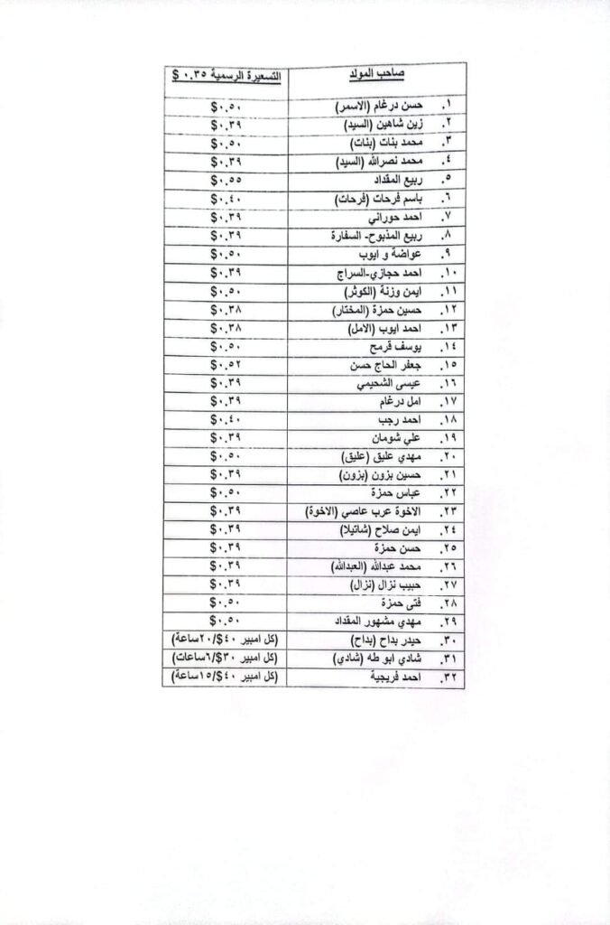 قدّمت بلديّة الغبيري شكوى رسميّة، بتاريخ الخميس، 5 أيلول 2024، ضدّ أصحاب المولّدات الكهربائيّة المدرجة في اللّائحة المرفقة لدى النّيابة العامّة الاستئنافيّة ووزارة الاقتصاد والنّيابة العامّة الماليّة، نتيجة عن مخالفتهم التّسعيرات المحدّدة من وزارة الطّاقة والمياه.