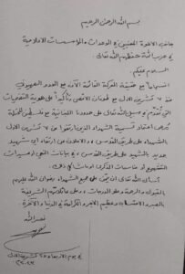 وجاء في نصّ الرسالة: “بسم الله الرحمن الرحيم، جانب الإخوة المعنيّين في الوحدات والمؤسّسات الإعلامية في حزب الله حفظهم الله تعالى، السلام عليكم.