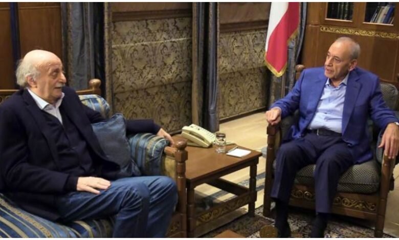 يلتقي رئيس مجلس النواب نبيه بري في عين التينة، الرئيس السابق للحزب التقدمي الاشتراكي وليد جنبلاط .