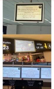 شهد مطار رفيق الحريري قرصنةً لشاشات الإعلانات الموجودة داخله، وظهرت على الشاشات رسائل إلى “حزب الله” وأمينه العام حسن نصرالله، باسم “الرب والشعب”، تُطالبهما بعدم إقحام لبنان في حرب وتتهمهما بإدخال السلاح عبر المطار.
