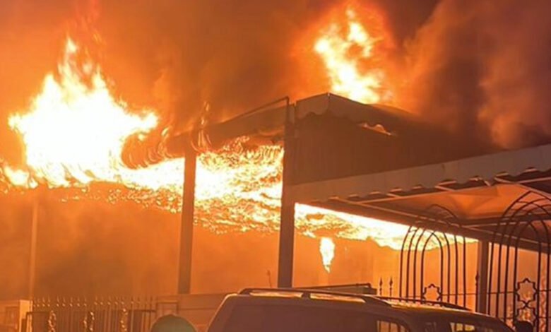 اندلع فجر اليوم حريق كبير في باحة مسجد التقوى بمدينة طرابلس، ما أدّى إلى احتراق الخيم الخارجية وامتداد النيران سريعاً في محيط المسجد.