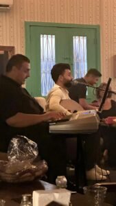 المطرب رواد أطرب الحضور بأجمل الأغاني اللبنانية، برفقة العود، في جو حميمي وتفاعلي زاد من دفء السهرة.