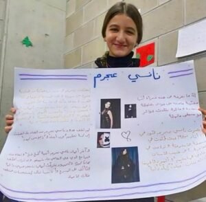 إنتشرت في الساعات القليلة الماضية صورة على مواقع التواصل الإجتماعي تعود لـ إيلا ابنة الفنانة اللبنانية نانسي عجرم ظهرت فيها وهي تتفاخر بإنجازات والدتها خلال عام 2022 امام زملائها في المدرسة.