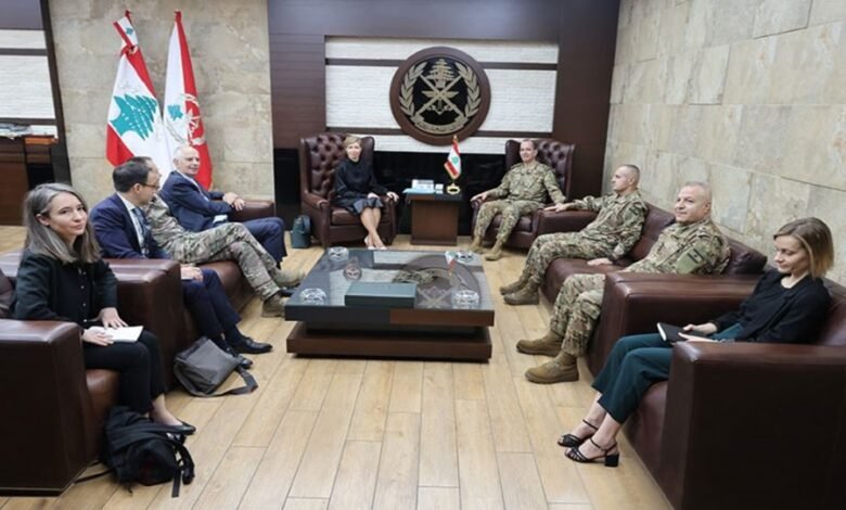 استقبل قائد الجيش العماد رودولف هيكل في مكتبه باليرزة اليوم الجمعة، مستشارة الرئيس الفرنسي لشؤون الشرق الأوسط وشمال أفريقيا Anne – Claire Legendre بحضور السفير الفرنسي لدى لبنان Hervé Magro وعضو لجنة مراقبة وقف الأعمال العدائية (Mechanism) الجنرال الفرنسي Valentin Seiler.