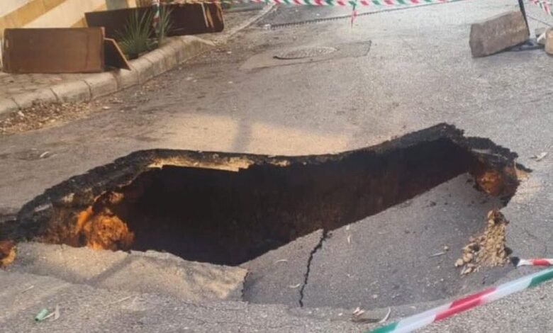 انخساف الطريق بين منطقة مار الياس ومنطقة تلة الخياط في بيروت