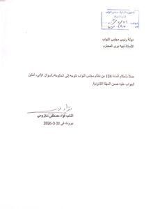 مرفق نصّ السؤال: هذا الكلام، إن صحّ، يشكّل خرقاً خطيراً للسيادة والأمن الوطني ولا يمكن التعامل معه كتصريح عابر. ما هي الإجراءات التي اتُّخذت لكشف هذه الشبكات؟ ومن سيُحاسَب على تزوير الوثائق الرسمية؟ هذا الملفّ لا يحتمل الصمت أو التردّد. المطلوب إجابات واضحة وإجراءات حاسمة، ونأمل الحصول عليها في أسرع وقت ممكن”.