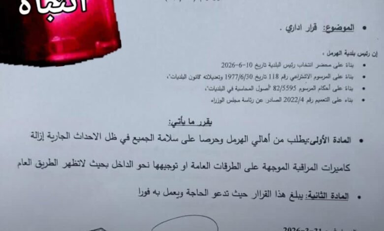 بلدية الهرمل تطلب إزالة الكاميرات عن الطرق العامة في المدينة لأسباب أمنية