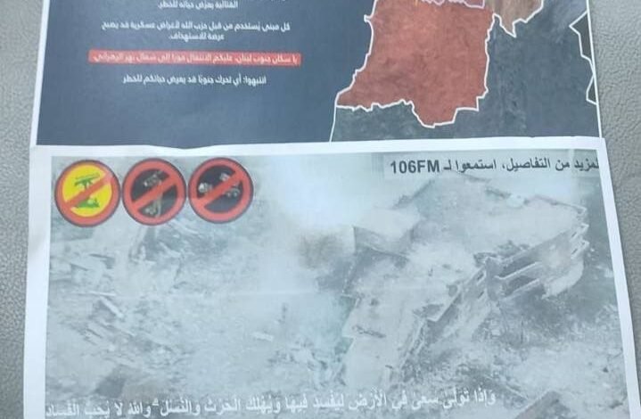 ‏إلقاء مناشير فوق بلدتي دير قانون رأس العين والرشيدية – قضاء صور