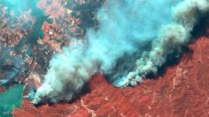 رصدت أقمار صناعية حجم حرائق الغابات على الساحل الجنوبي لتركيا، المشتعلة لليوم الرابع على التوالي. وأفادت المعلومات عن ارتفاع حصيلة قتلى الحرائق في تركيا إلى 4 أشخاص، بينما يكافح رجال الإطفاء النيران بعد إخلاء عشرات القرى وبعض الفنادق.