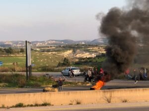 قطع أوتوستراد الزهراني في محلة عدلون قرب مقام النبي ساري باتجاه صيدا من قبل بعض المحتجين بسبب الأوضاع الاقتصادية