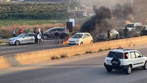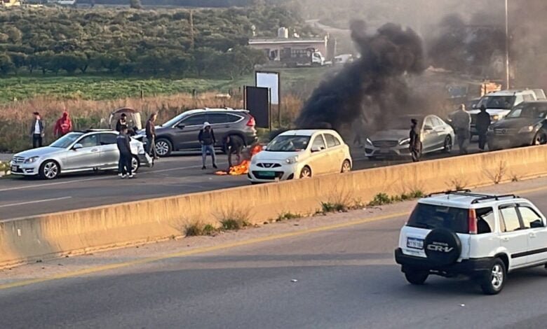 قطع أوتوستراد الزهراني في محلة عدلون بإتجاه صيدا من قبل بعض المحتجين بسبب الأوضاع الإقتصادية