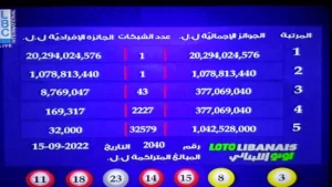والجائزة الاولى تشكل سابقة تاريخية، فوصل المبلغ إلى أكثر من 20 مليار. أما الجائزة الثانية، فتخطت المليار ليرة.