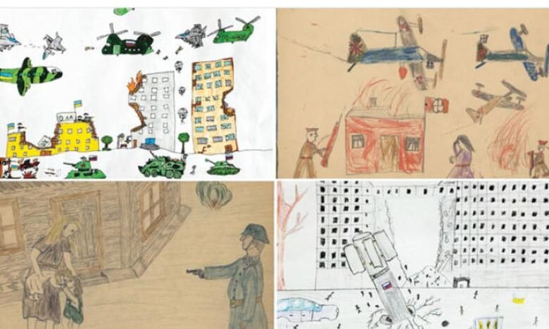 إنها لوحات رسمها الأطفال الذين عايشوا الغزو الروسي لأوكرانيا الذي بدأ في 24 فبراير (شباط) الماضي.