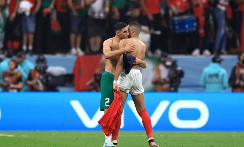 اللقطة الأجمل بين نجم فرنسا مبابي والنجم المغربي أشرف حكيمي إثر نهاية المباراة التاريخية