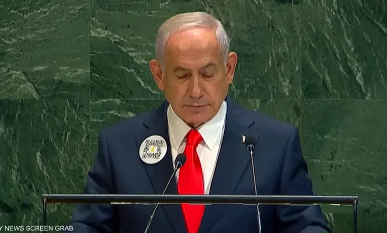 خلال خطابه في الأمم المتحدة الجمعة، ظهر رئيس الوزراء الإسرائيلي بنيامين نتنياهو مرتدياً رمز “استجابة سريعة” أو ما يسمى “QR”.